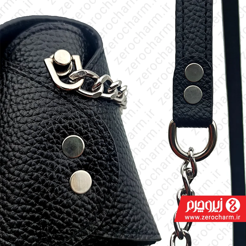 - طول بند کیف 105 سانتیمتری که ترکیبی از زنجیر و چرم می باشد.