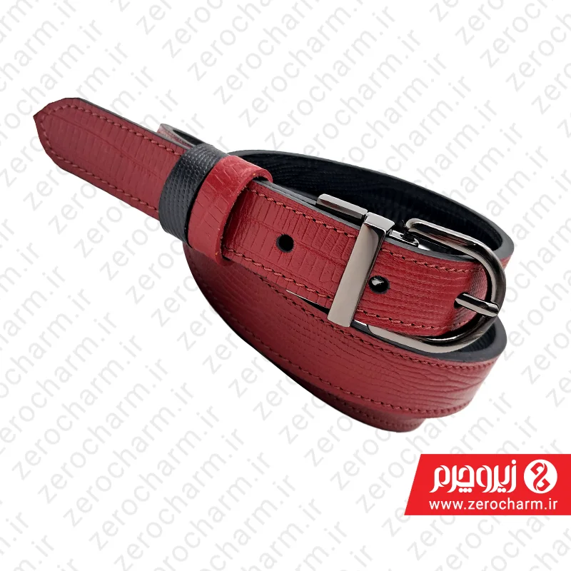 کمربند زنانه چرم طبیعی دورو با سگک چرخشی_قرمز و مشکی